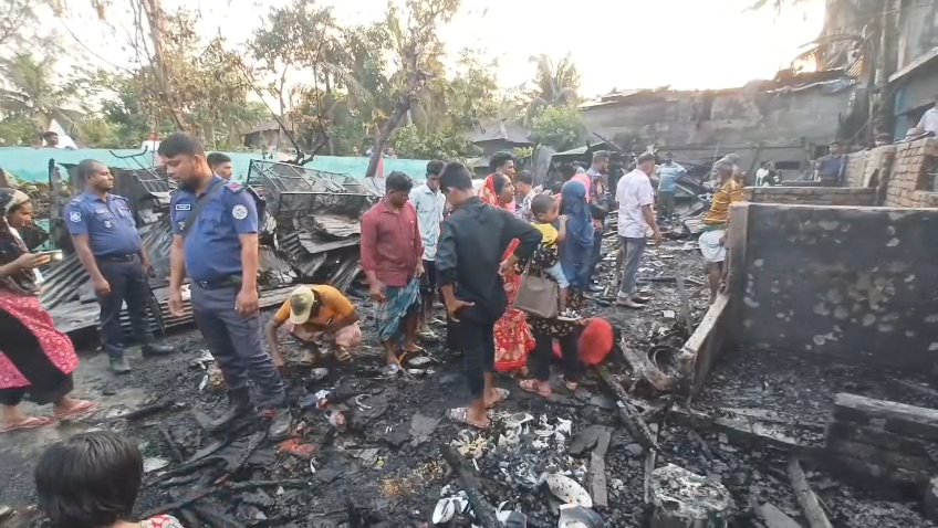 ঝালকাঠির শ্মশানঘাট এলাকায় ভয়াবহ অগ্নিকাণ্ড, পুড়ে ছাই ১০টির বেশি বসতঘর